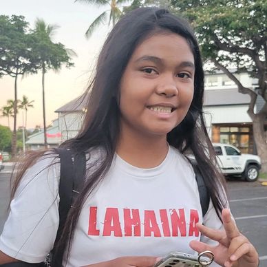 Magnus loves playing baseball, reading fantasy fiction, and is a really good student. He lost his house in the fire and can’t wait until he can move back into a new home in Lahaina.