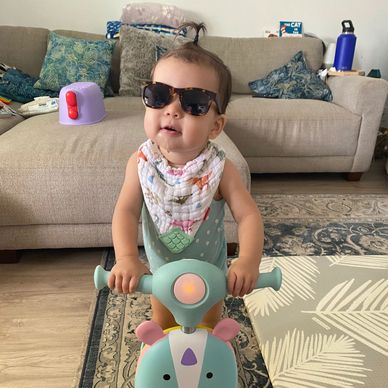 Aleialana is a 5 month old is trying to crawl, walk and keep up with her big sister. She loves soft baby toys and teethers, a walker would be very useful.