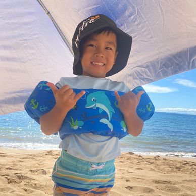 Kohea loves to go holoholo in his stroller, playing water, and going on bike rides.