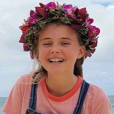 Leila is bright, strong, courageous. She enjoys cheering with Hawaii All Stars, swimming/snorkeling in the pool/beach, & riding her bike. She likes doing arts/crafts, making slime, & building legos. She loves animals & collects squishmallows. Although losing everything, she is hopeful & her resilience strengthens us. She wishes Lahaina & everything back.