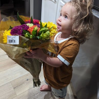 Zion is 2 1/2. He loves playing with monster trucks and pretending to be spider man . He is super into art and making mud pies with friends.