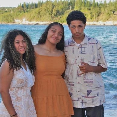 Kaiu is a bright energetic 16 year old that wishes the Fires never happened. She wants to be in school at Lahainaluna with her friends. She now is in a new school in a different town she wont participate in sports as she does not want to compete against her school. She is adjusting but it will be a long process. Kaiu lost everything in the fires and her size clothing is not always available she is a great big sister as she is just happy that they are all okay and have each other